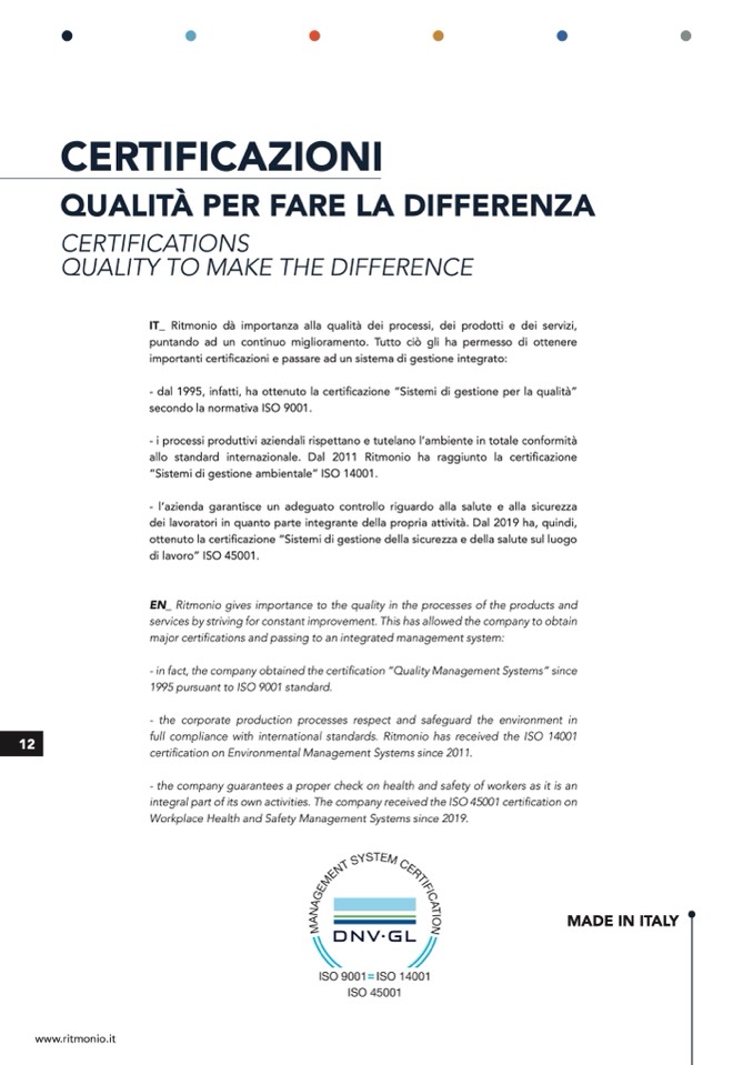 allo standard internazionale. Dal 2011 Ritmonio ha raggiunto la certificazione
