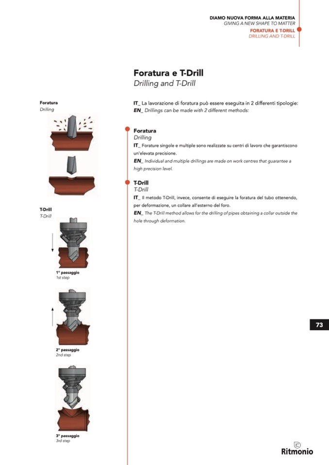 IT_ Il metodo T-Drill, invece, consente di eseguire la foratura del tubo ottenendo,