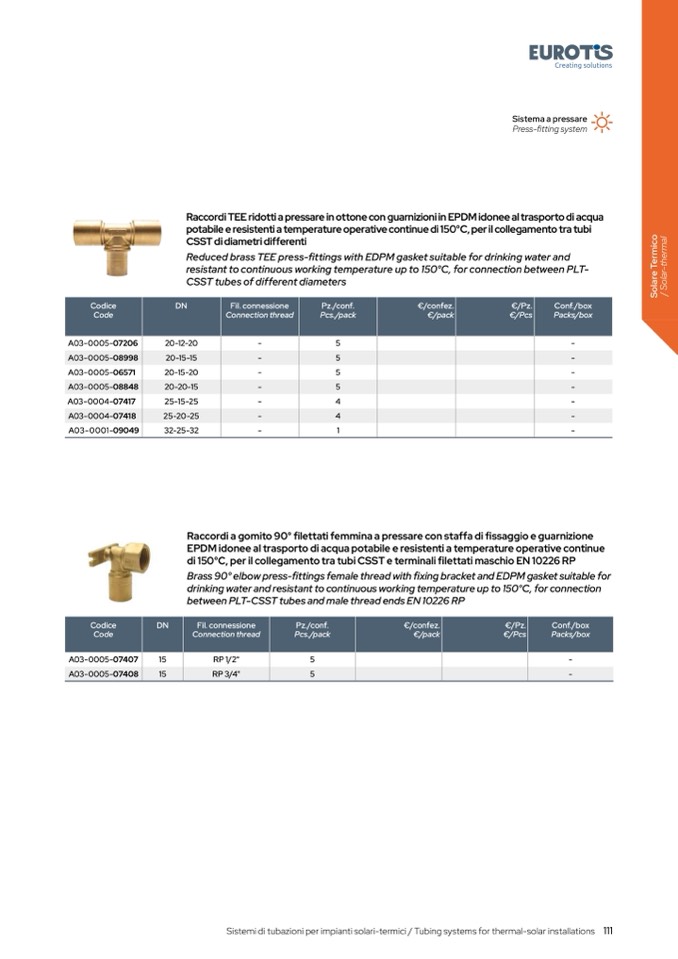Sistemi di tubazioni per impianti solari-termici / Tubing systems for thermal-solar installations 111