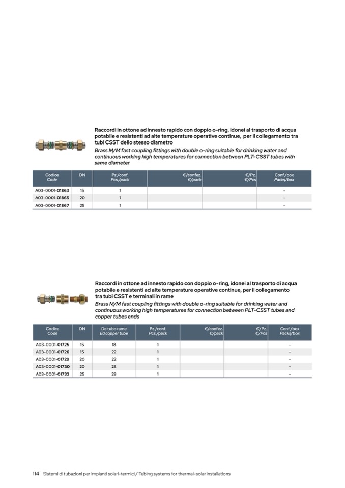 114 Sistemi di tubazioni per impianti solari-termici / Tubing systems for thermal-solar installations