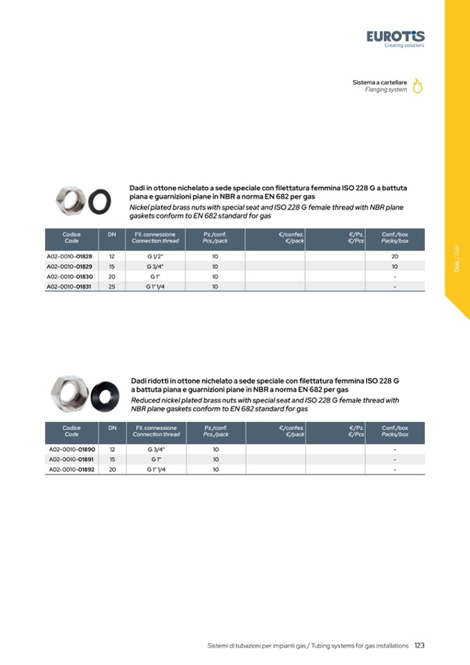 Sistemi di tubazioni per impianti gas / Tubing systems for gas installations 123