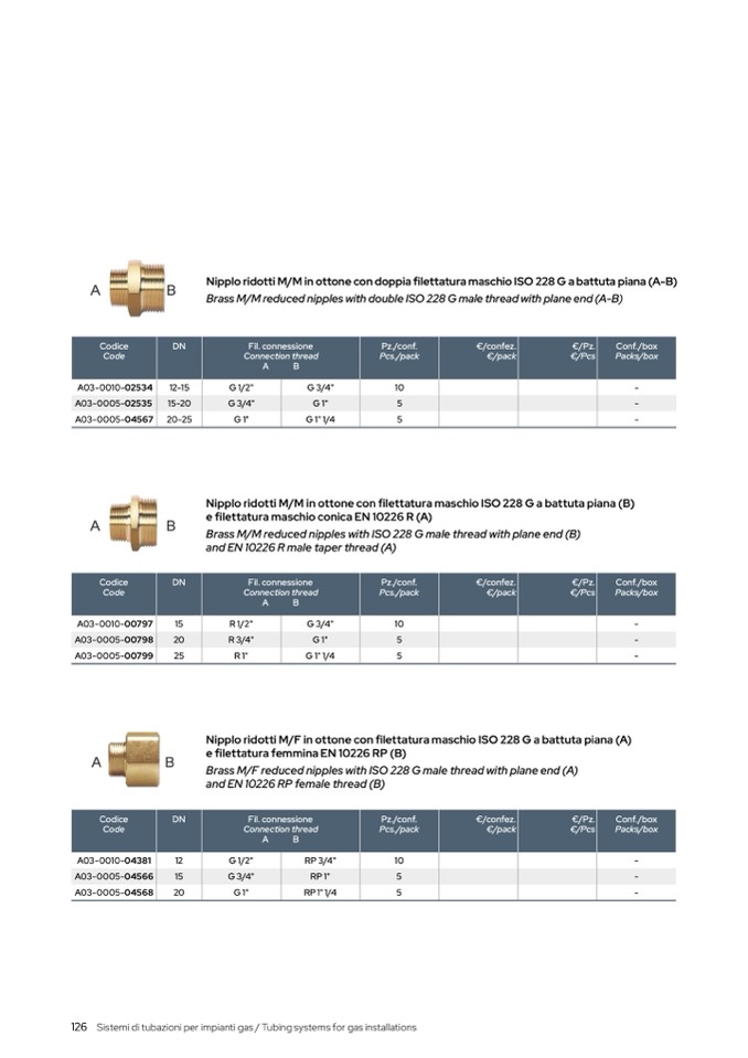 Sistemi di tubazioni per impianti gas / Tubing systems for gas installations