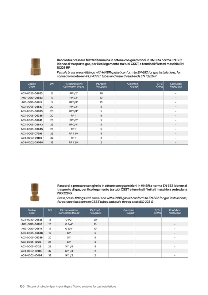 136 Sistemi di tubazioni per impianti gas / Tubing systems for gas installations