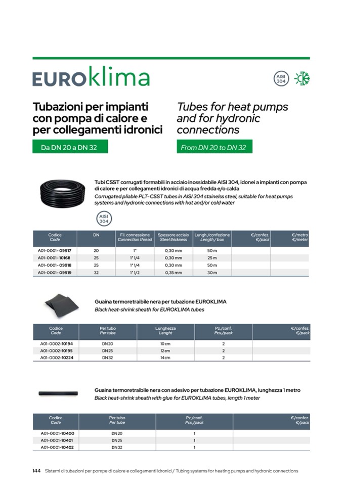 144 Sistemi di tubazioni per pompe di calore e collegamenti idronici / Tubing systems for heating pumps and hydronic connections