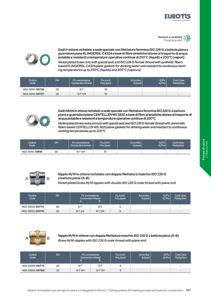 Sistemi di tubazioni per pompe di calore e collegamenti idronici / Tubing systems for heating pumps and hydronic connections 147