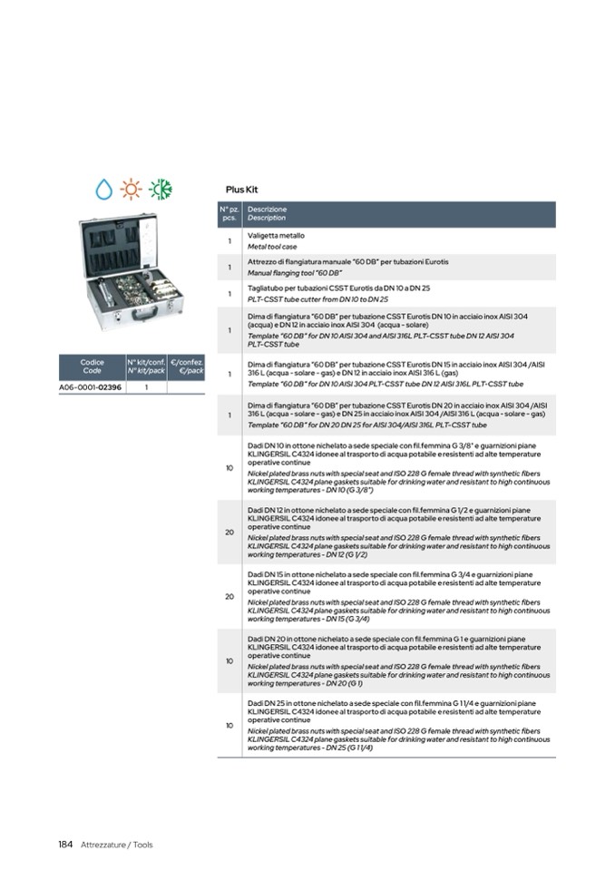 (acqua) e DN 12 in acciaio inox AISI 304 (acqua - solare)