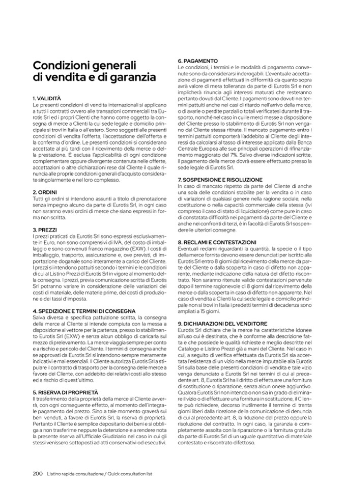 200 Listino rapida consultazione / Quick consultation list