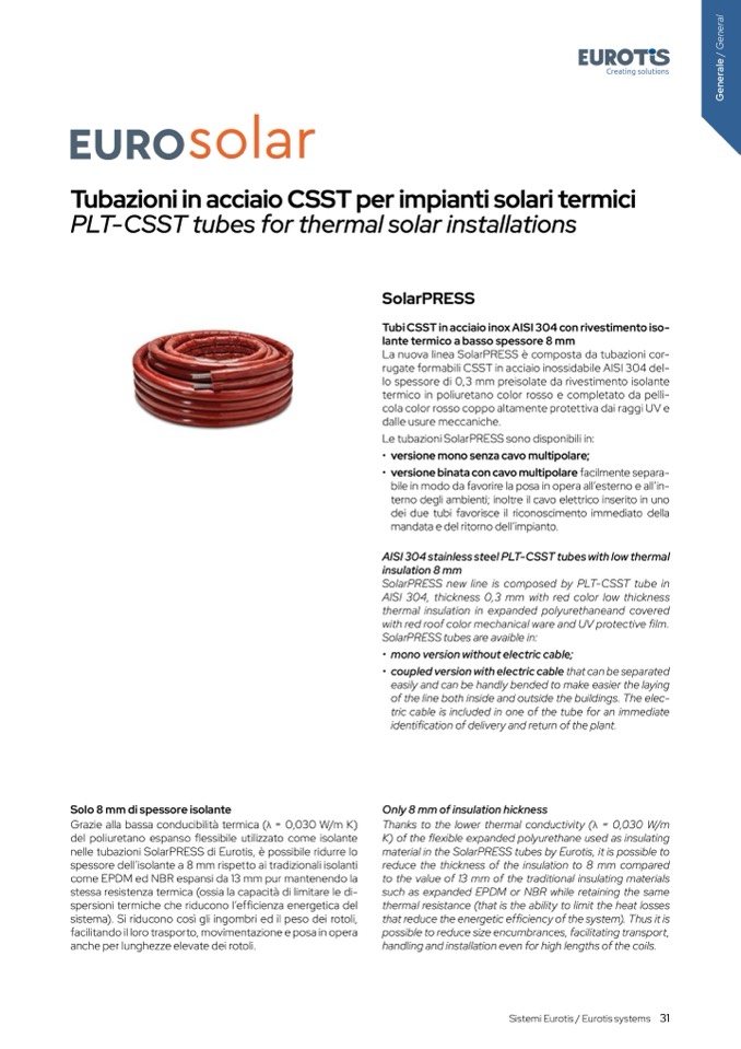nelle tubazioni SolarPRESS di Eurotis,