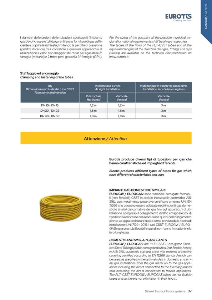 installazione UNI 7129 : 2015. I tubi CSST EUROGW / EURO-