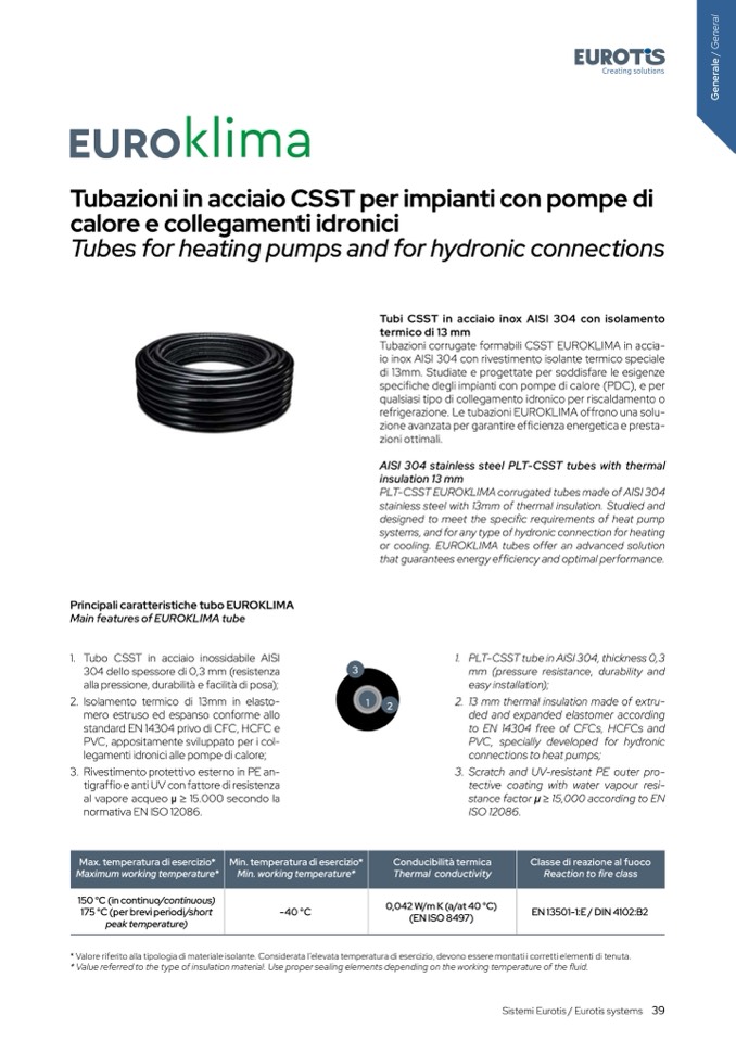 Principali caratteristiche tubo EUROKLIMA