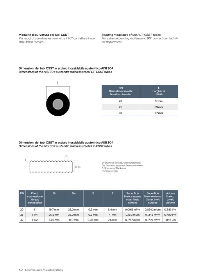 Dimensions of the AISI 304 austenitic stainless steel PLT-CSST tubes