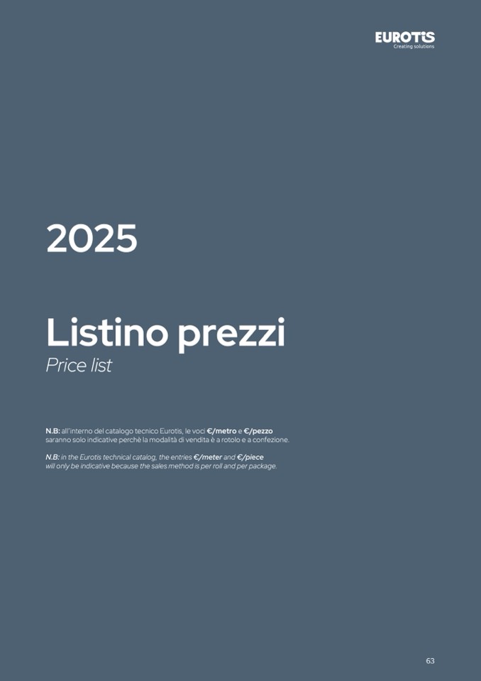 N.B: all’interno del catalogo tecnico Eurotis, le voci €/metro e €/pezzo