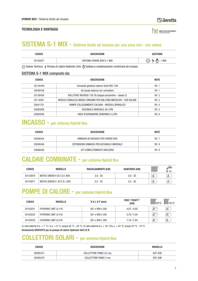 Solare Termico; Pompa di calore Hydronic Unit; Caldaia a condensazione combinata da incasso