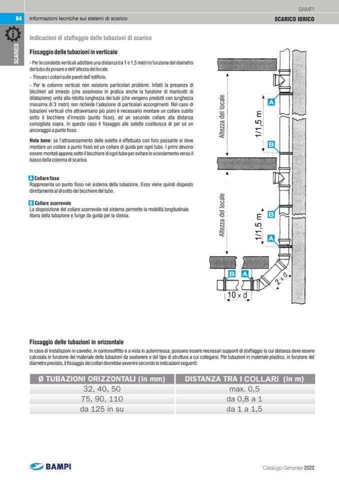 tubazioni verticali che attraversano più piani è necessario montare un collare subito
