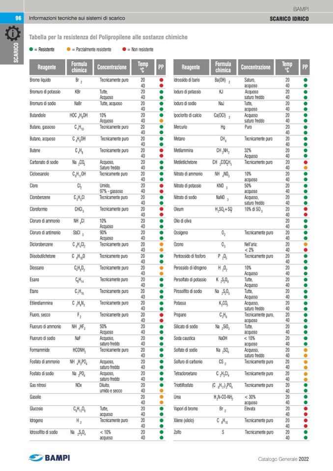 Tabella per la resistenza del Polipropilene alle sostanze chimiche