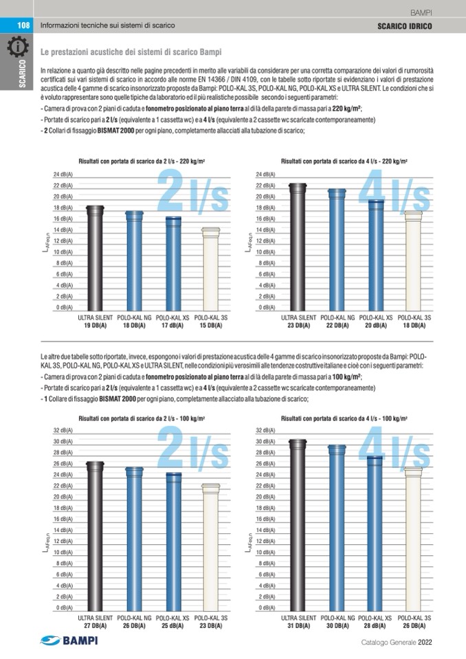 Lealtreduetabellesottoriportate,invece,espongonoivaloridiprestazioneacusticadelle4gammediscaricoinsonorizzatopropostedaBampi:POLO-