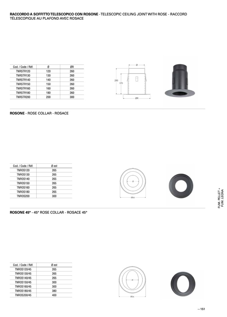 RACCORDO A SOFFITTO TELESCOPICO CON ROSONE - TELESCOPIC CEILING JOINT WITH ROSE - RACCORD