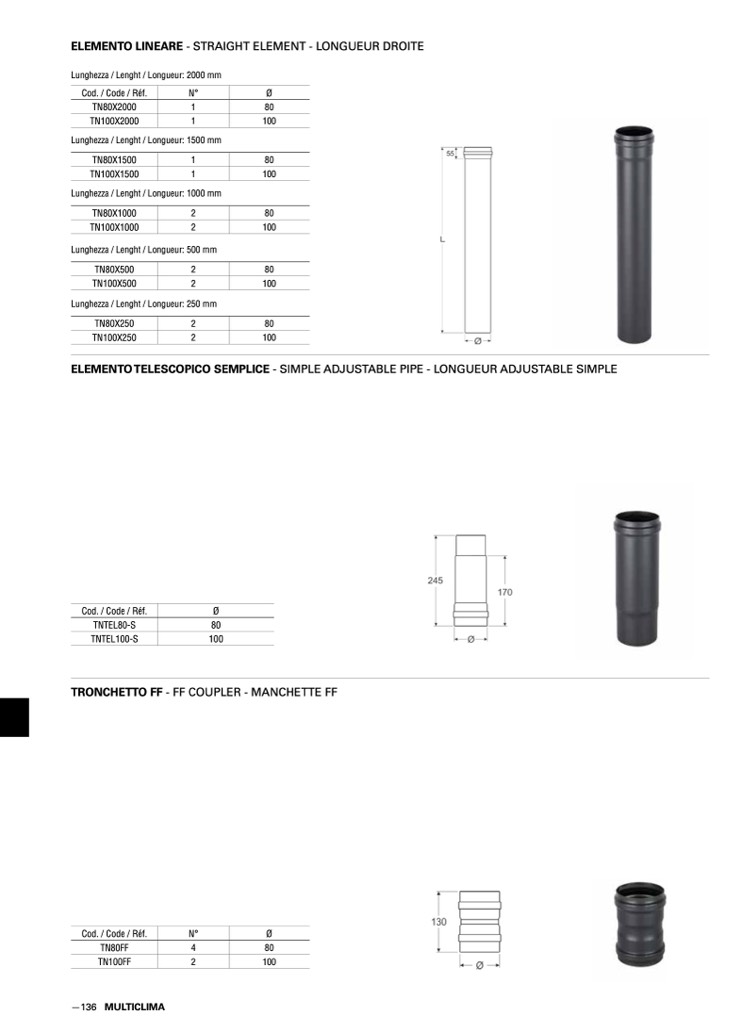 ELEMENTO TELESCOPICO SEMPLICE - SIMPLE ADJUSTABLE PIPE - LONGUEUR ADJUSTABLE SIMPLE