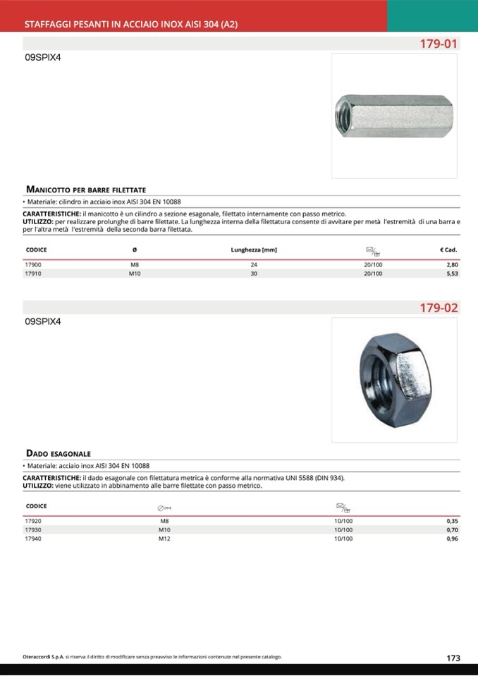 STAFFAGGI PESANTI IN ACCIAIO INOX AISI 304 (A2)