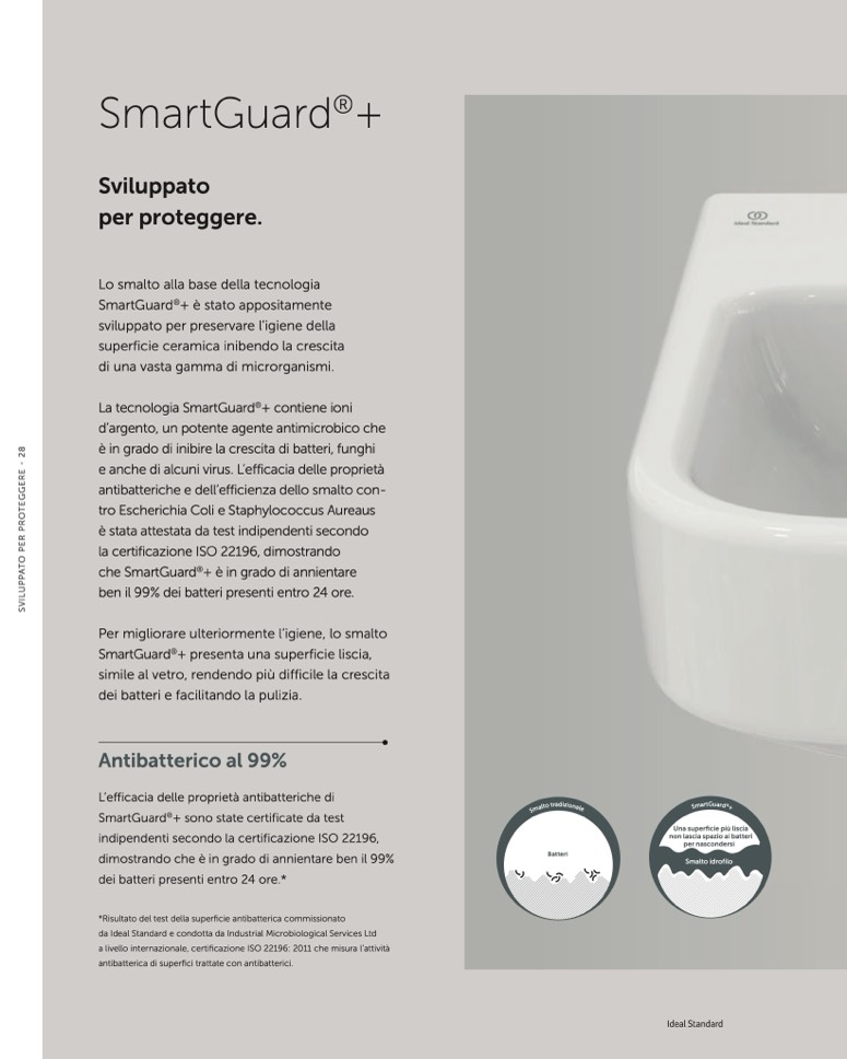 a livello internazionale, certificazione ISO 22196: 2011 che misura l’attività