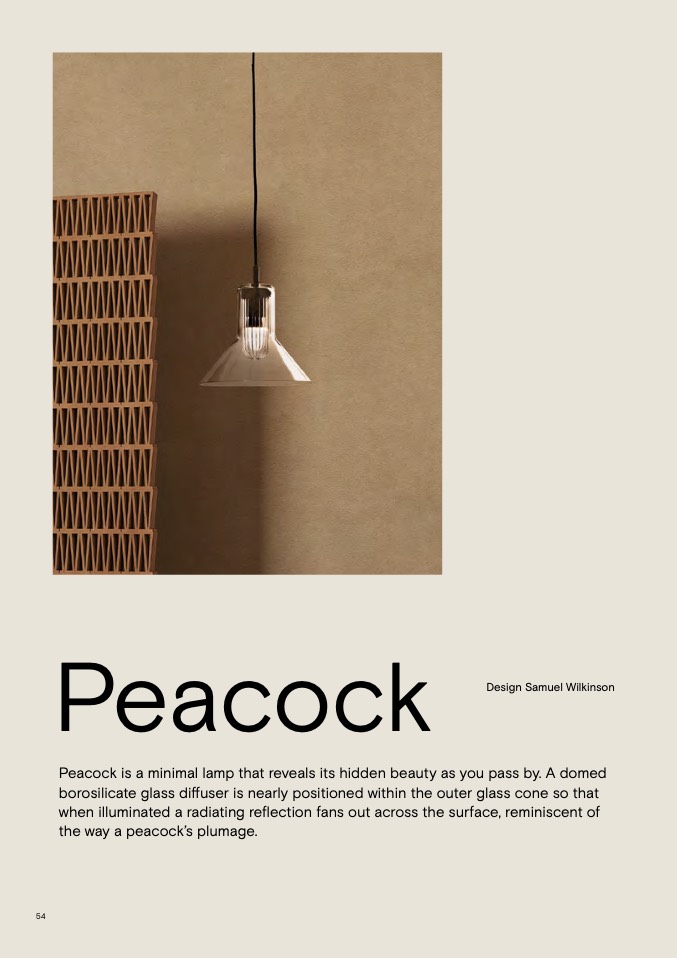 Peacock is a minimal lamp that reveals its hidden beauty as you pass by. A domed