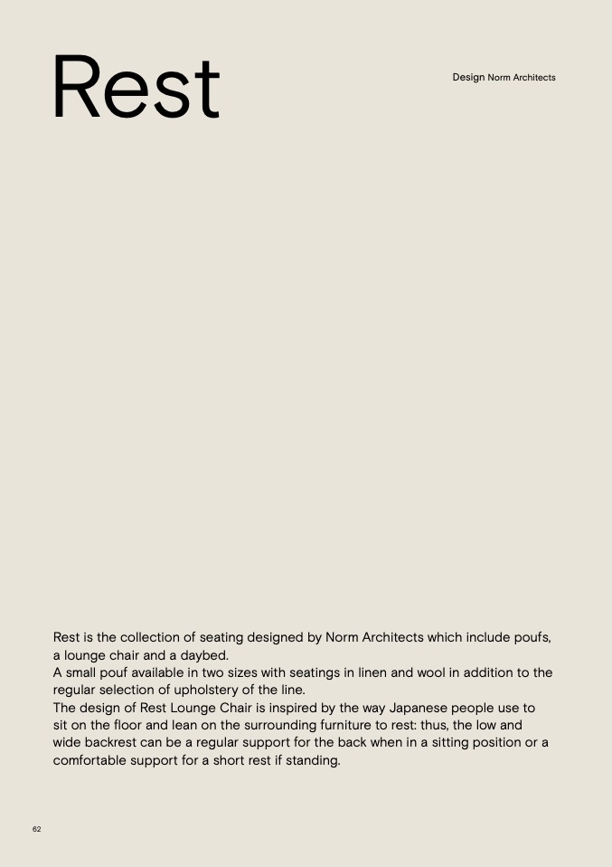 Rest is the collection of seating designed by Norm Architects which include poufs,