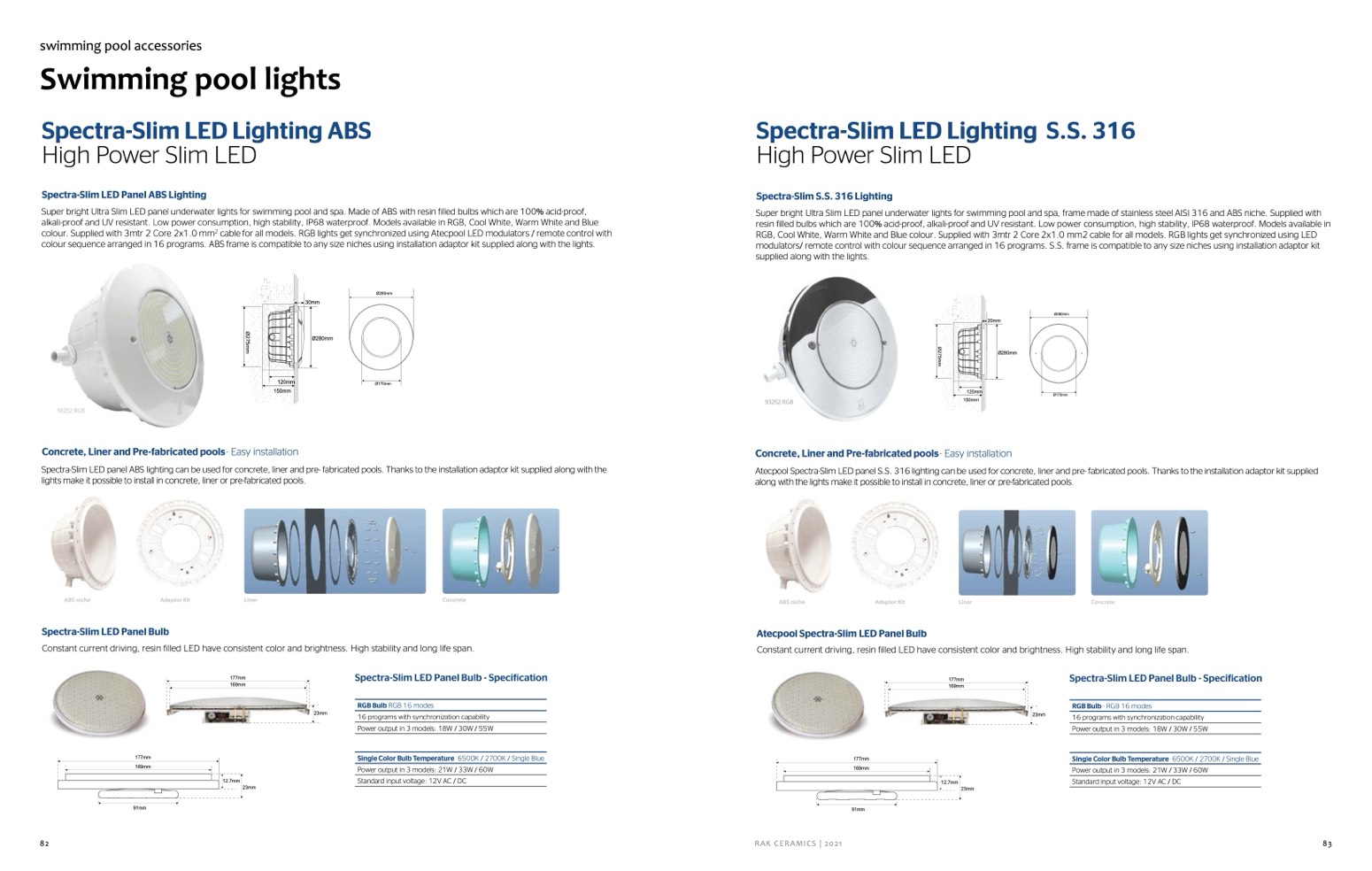 Spectra-Slim LED panel ABS lighting can be used for concrete, liner and pre- fabricated pools. Thanks to the installation adaptor kit supplied along with the