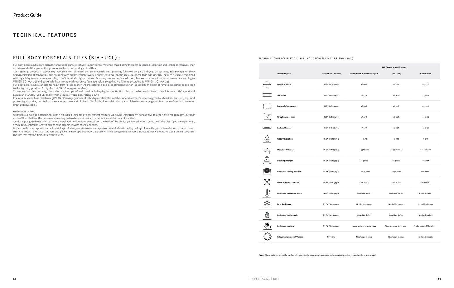TEcHnical cHaracTErisTics - full Body PorcElain TilEs (Bia - ugl)