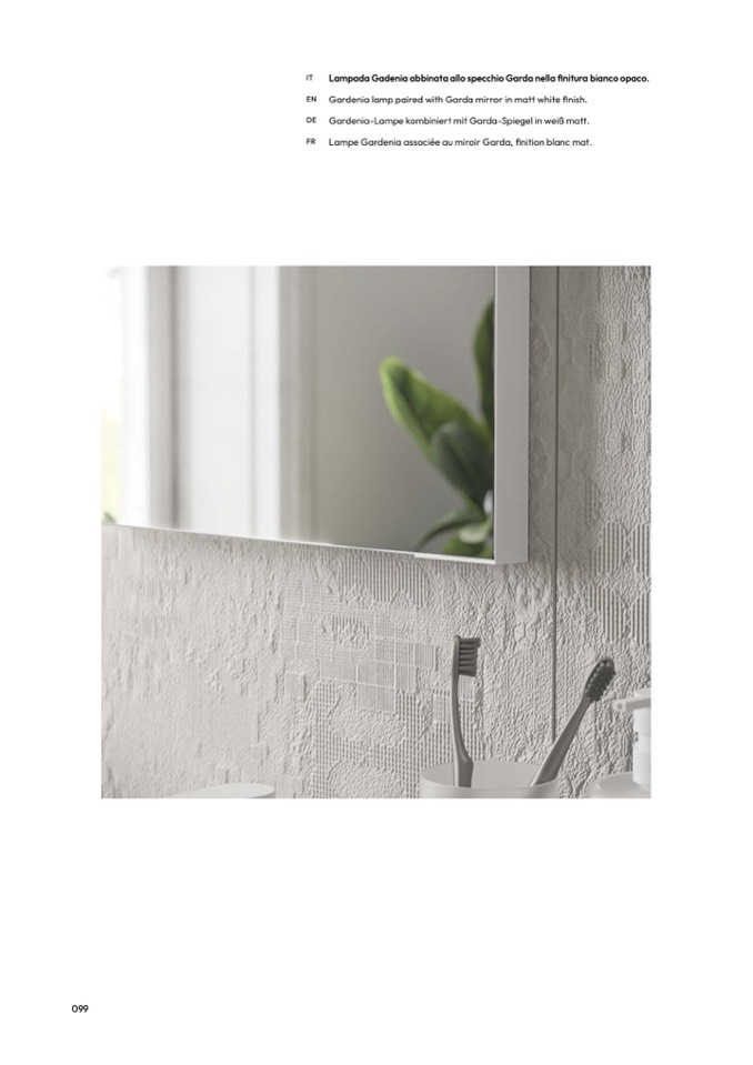 Lampada Gadenia abbinata allo specchio Garda nella finitura bianco opaco.