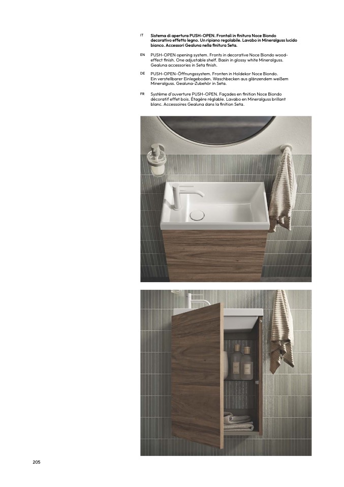 PUSH-OPEN opening system. Fronts in decorative Noce Biondo wood-