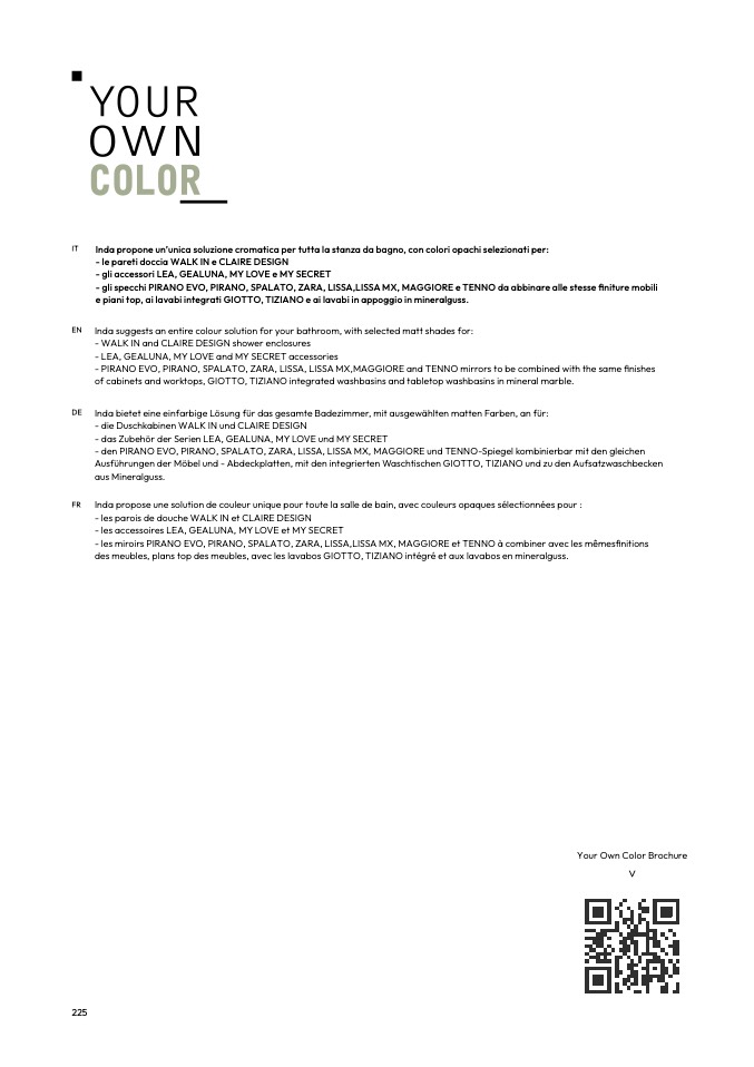 Inda propose une solution de couleur unique pour toute la salle de bain, avec couleurs opaques s
