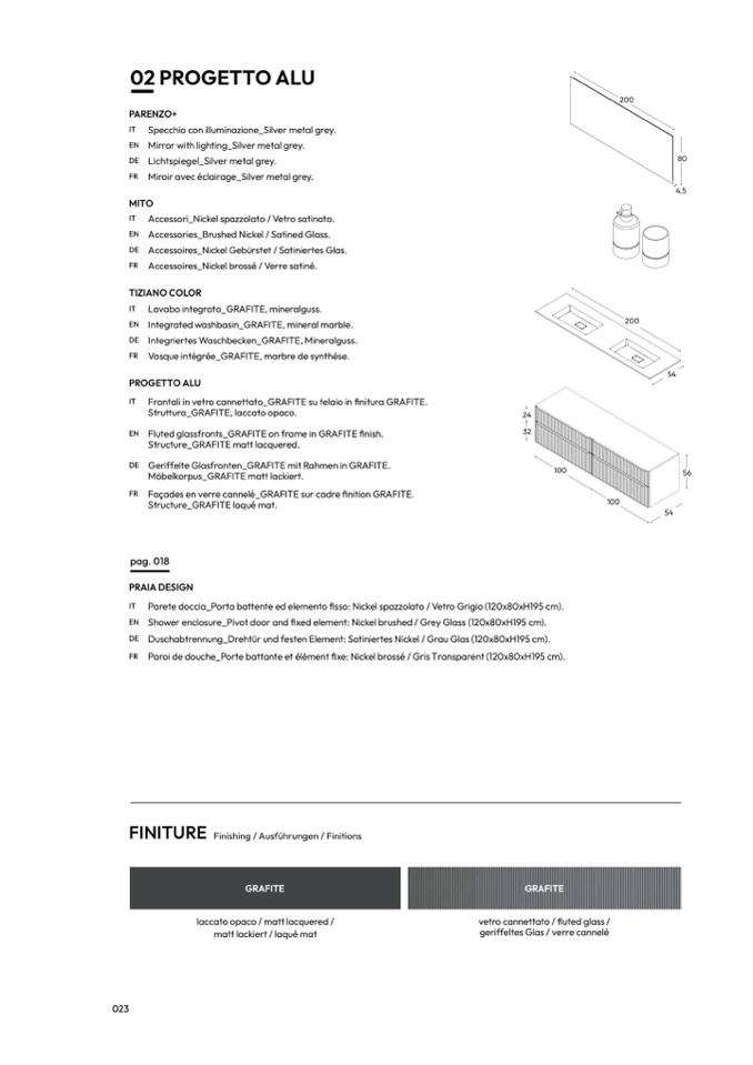fixed element: Nickel brushed / Grey Glass (120x80xH195 cm).