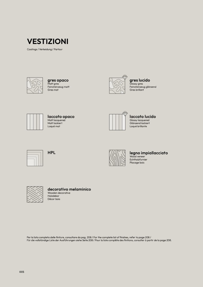finiture, consultare da pag. 208 / For the complete list of finishes, refer to page 208 /