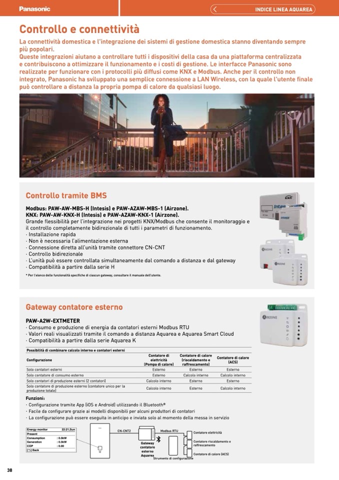 Grande flessibilità per l’integrazione nei progetti KNX/Modbus che consente il monitoraggio e