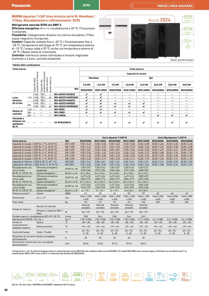 à alla norma EN12102 alle condizioni della norma EN14825. 3) I modelli WH-WXG sono a tenuta stagna. 4) Verificare le normative locali.* La