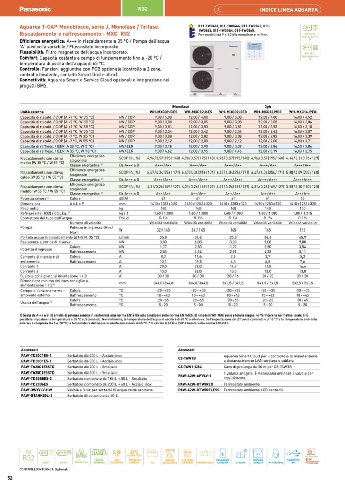 1) Scala da A+++ a D. 2) Livello di potenza sonora in conformità alla norma EN12102 alle condizioni della norma EN14825. 3) I modelli WH-MXC sono a tenuta stagna. 4) Verificare le normative locali. 5) È