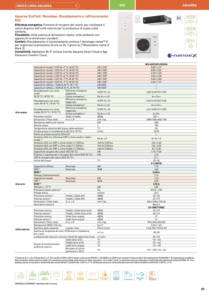 potenza sonora è misurata in conformità alle norme EN14511 ed EN12102-1:2017 a +7 °C. 8) Potenza sonora in conformità alle norme 811/2013, 813/2013 e EN12102-1:2017 a +7 °C.