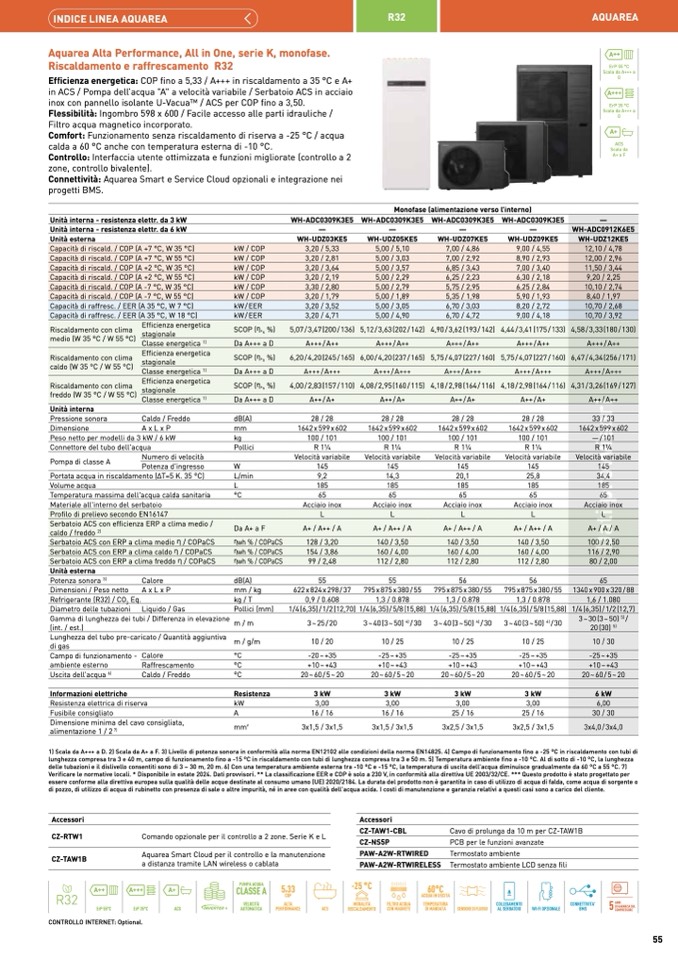 Capacità di riscald. / COP (A -7 °C, W 55 °C)