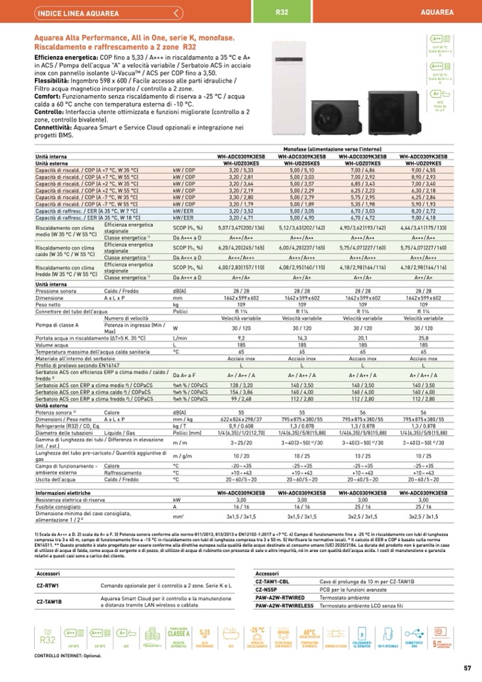 EN14511. ** Questo prodotto è stato progettato per essere conforme alla direttiva europea sulla qualità delle acque destinate al consumo umano (UE) 2020/2184. La durata del prodotto non è garantita in caso