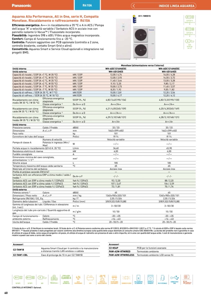 EN14511. ** Questo prodotto è stato progettato per essere conforme alla direttiva europea sulla qualità delle acque destinate al consumo umano (UE) 2020/2184. La durata del prodotto non è garantita in caso