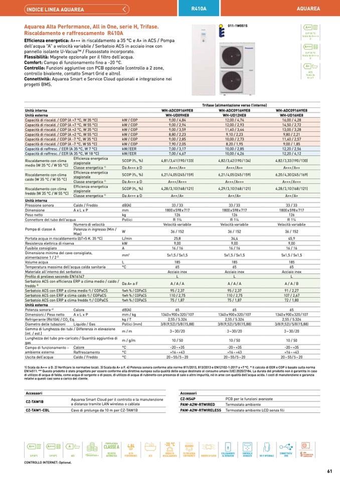 EN14511. ** Questo prodotto è stato progettato per essere conforme alla direttiva europea sulla qualità delle acque destinate al consumo umano (UE) 2020/2184. La durata del prodotto non è garantita in caso