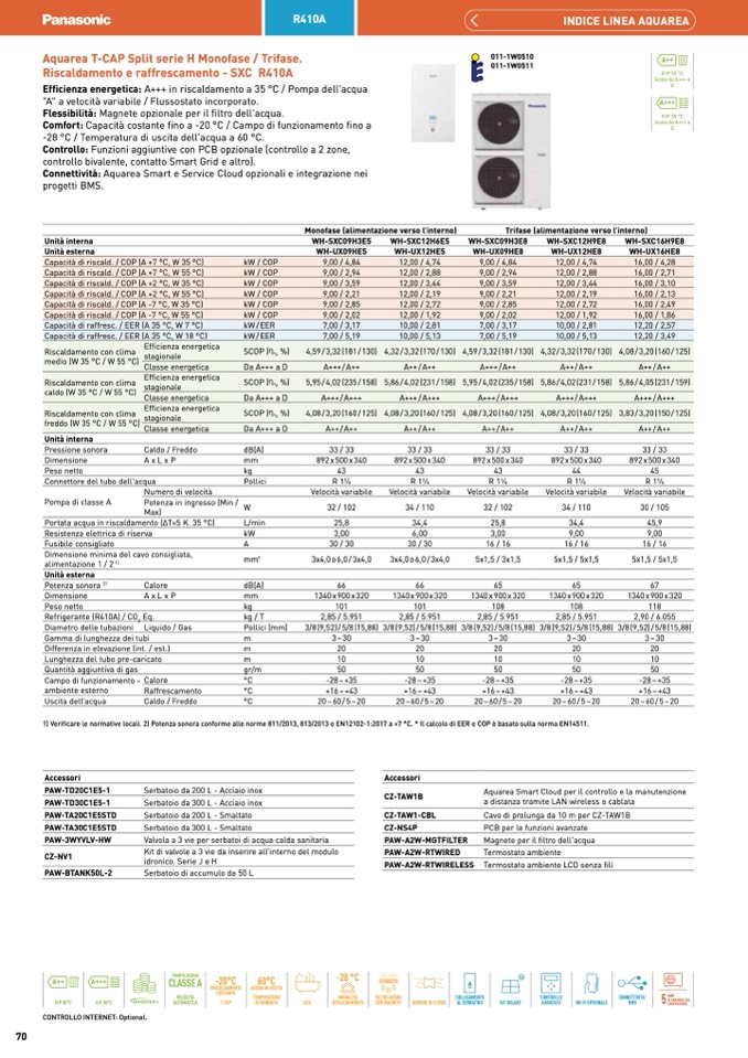 1) Verificare le normative locali. 2) Potenza sonora conforme alle norme 811/2013, 813/2013 e EN12102-1:2017 a +7 °C. * Il calcolo di EER e COP è basato sulla norma EN14511.