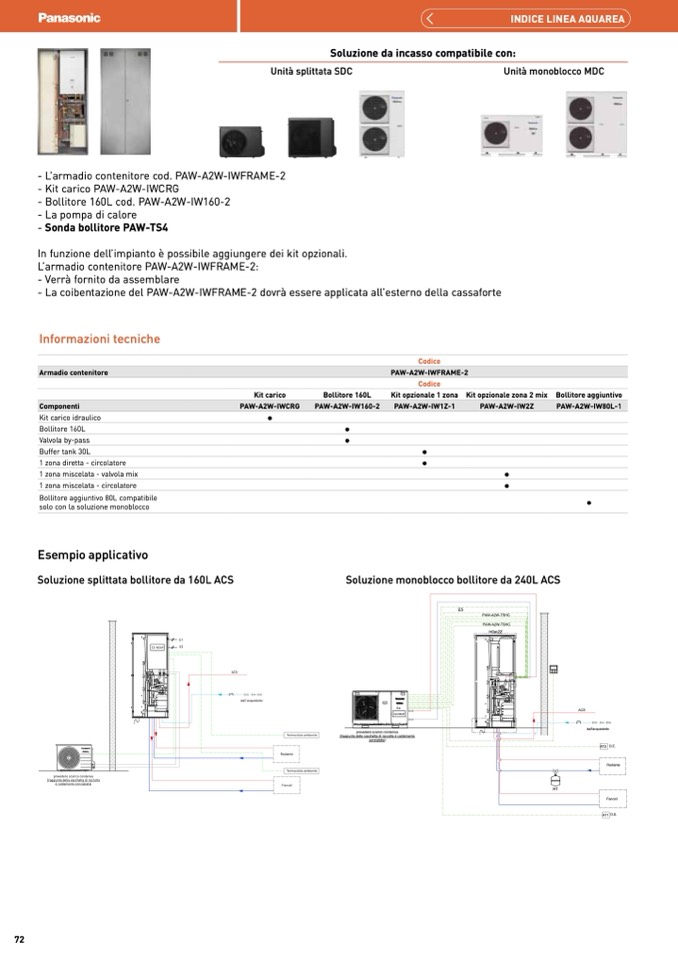 Il modulo ad incasso include: serbatoio ACS da 160 litri