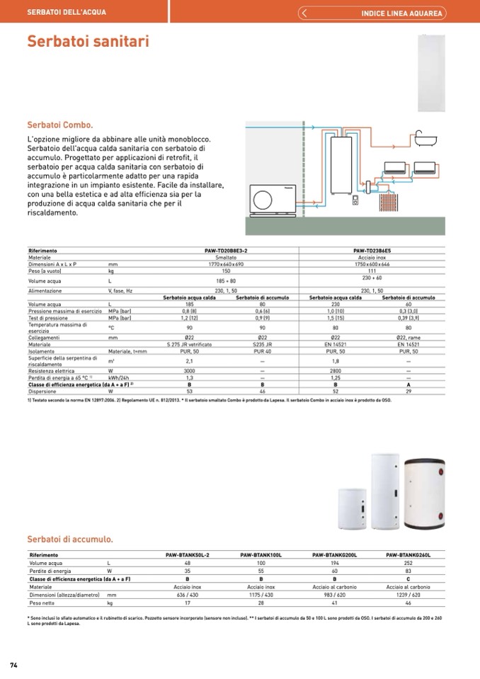 1) Testato secondo la norma EN 12897:2006. 2) Regolamento UE n. 812/2013. * Il serbatoio smaltato Combo