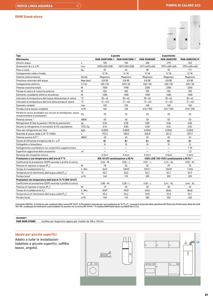 103-15C, scaldacqua termodinamici autoriscaldanti (in accordo con la norma EN 16147). * Il modello DHW Stand-alone è prodotto da C.I.C.E.