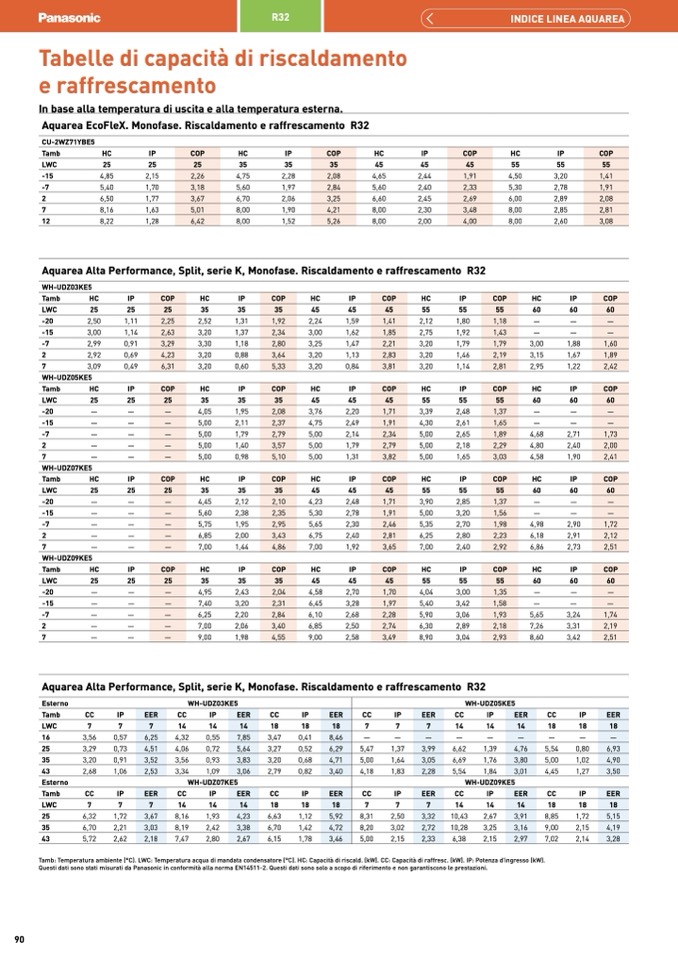 Questi dati sono stati misurati da Panasonic in conformità alla norma EN14511-2. Questi dati sono solo a scopo di riferimento e non garantiscono le prestazioni.