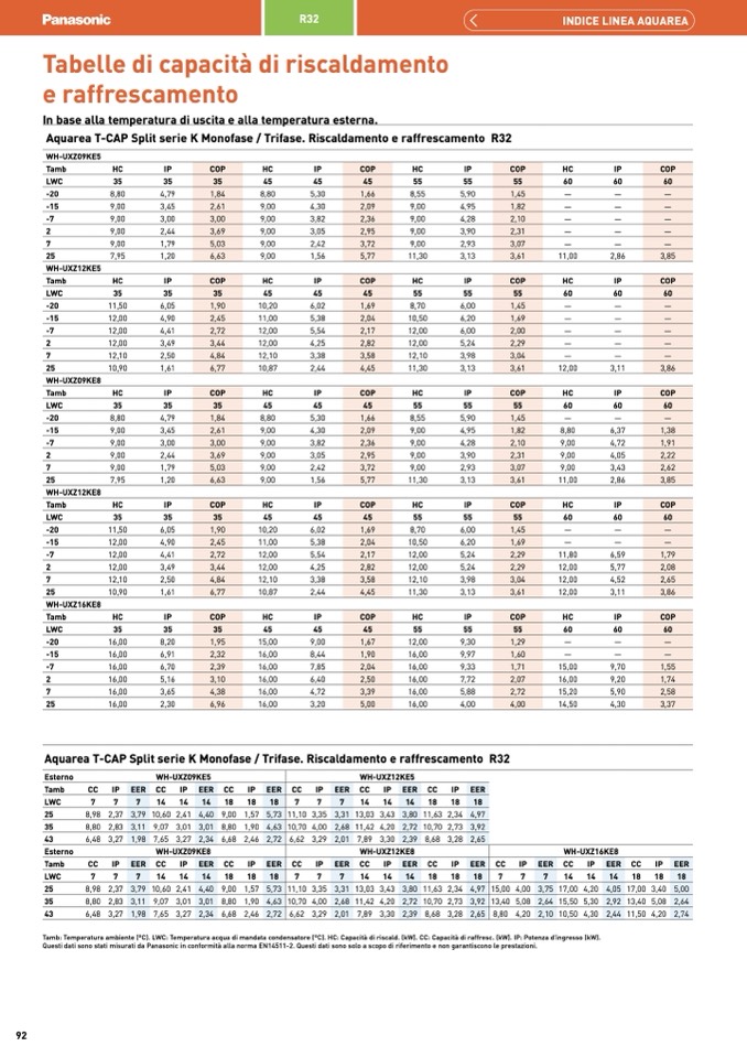 Questi dati sono stati misurati da Panasonic in conformità alla norma EN14511-2. Questi dati sono solo a scopo di riferimento e non garantiscono le prestazioni.