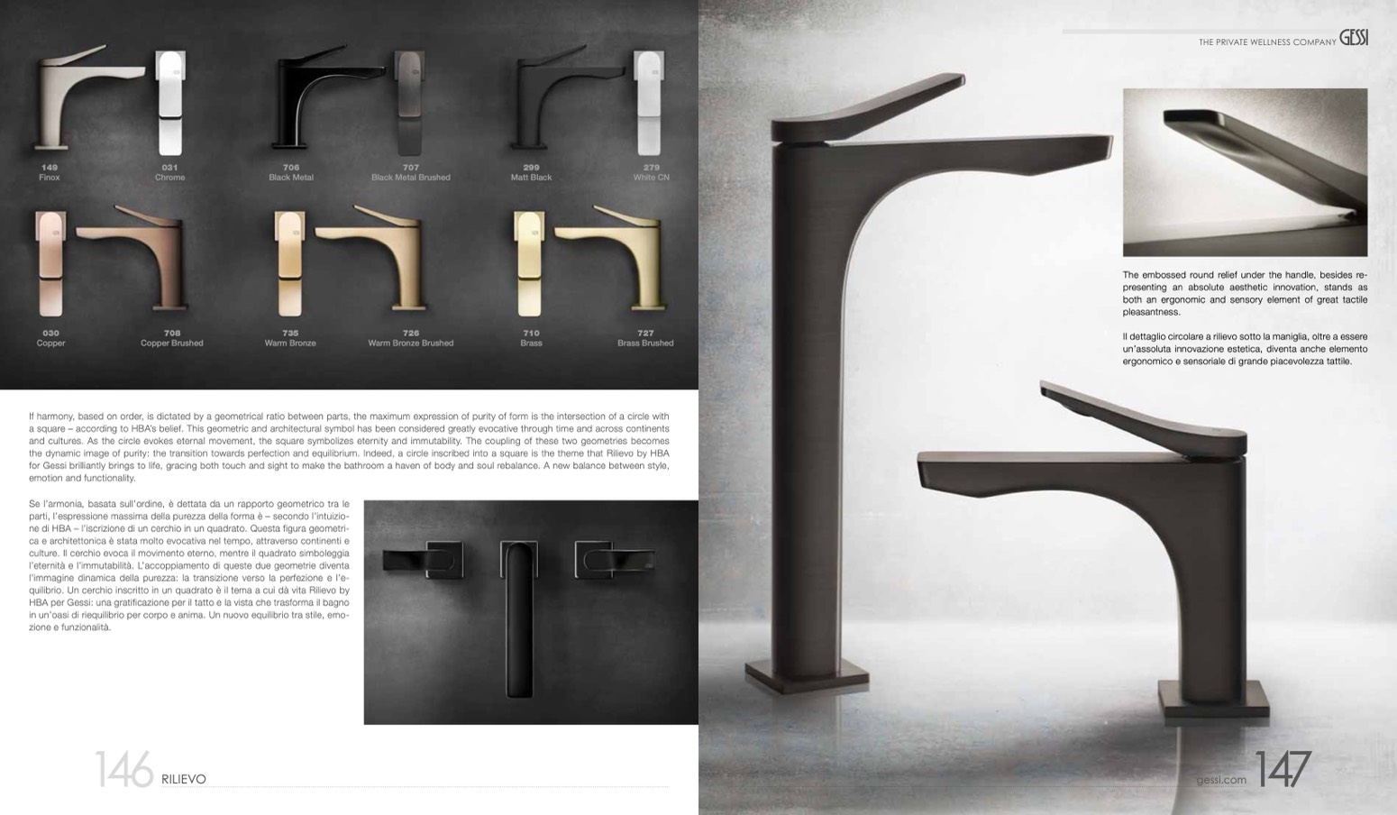 for Gessi brilliantly brings to life, gracing both touch and sight to make the bathroom a haven of body and soul rebalance. A new balance between style,