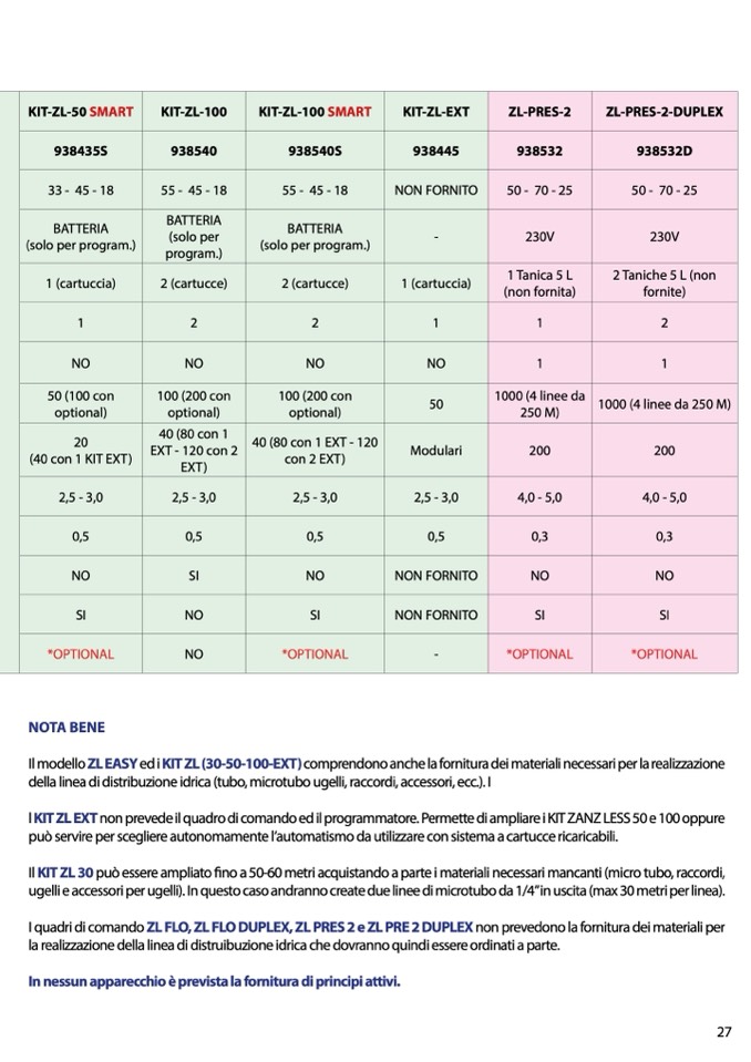 l KIT ZL EXT non prevede il quadro di comando ed il programmatore. Permette di ampliare i KIT ZANZ LESS 50 e 100 oppure