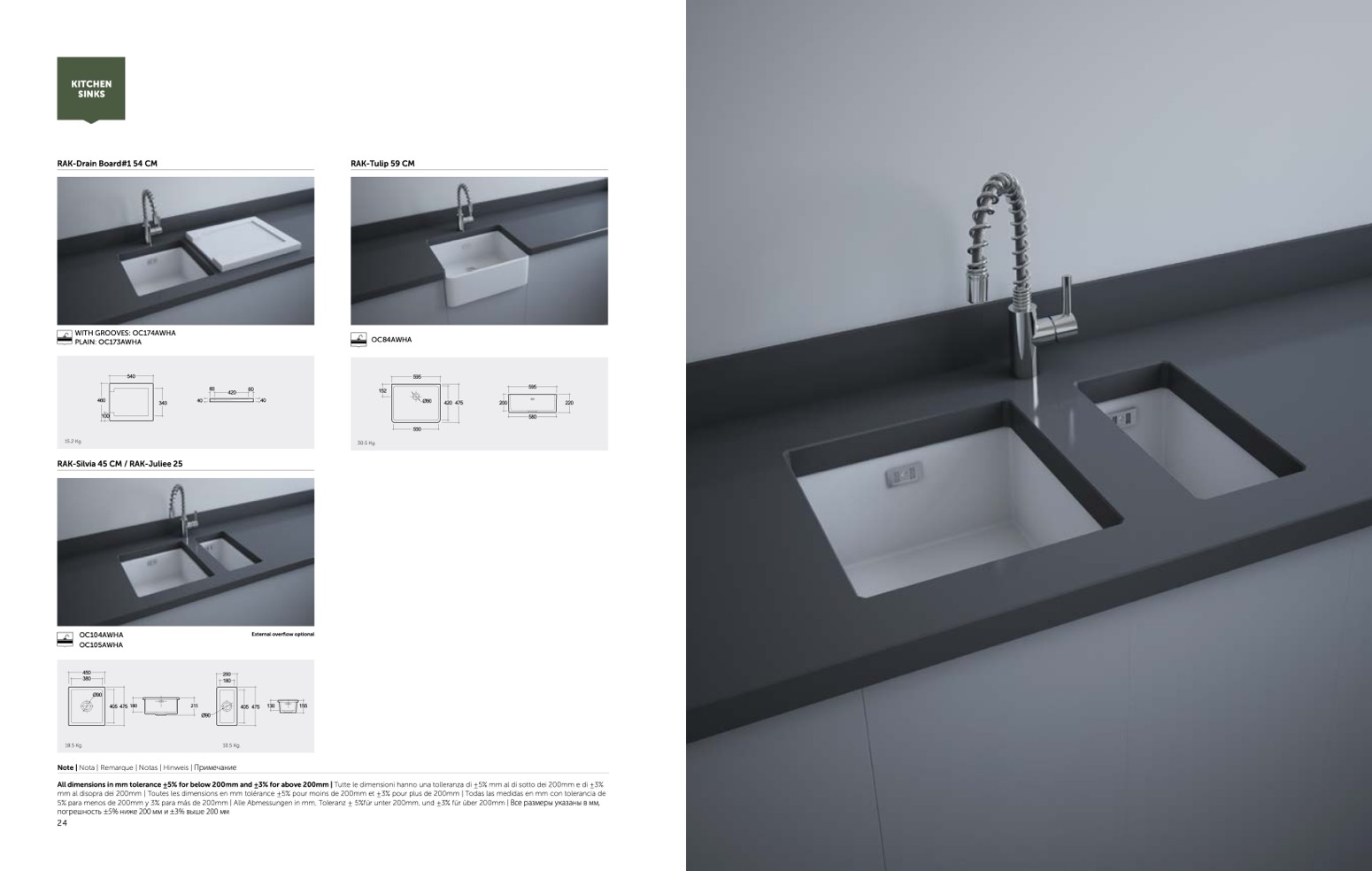mm al disopra dei 200mm | Toutes les dimensions en mm tolérance ±5% pour moins de 200mm et ±3% pour plus de 200mm | Todas las medidas en mm con tolerancia de